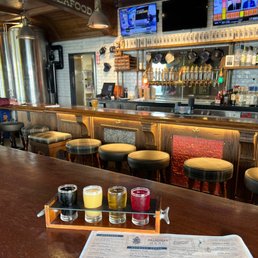 We decided to pop by on a lazy Sunday afternoon and the place was basically deserted. Indoor was clean and the decor was cute. There was lots of free parking dedicated to the establishment, which, if you know Newport, is a MAJOR plus. The servers were relatively attentive and quick to answer questions. I love that the beer is brewed in house but it did lack a little bit of unique flavor. Overall, not a brewery vibe if that's what you're looking for but great for a chill afternoon drink with your loved ones.
